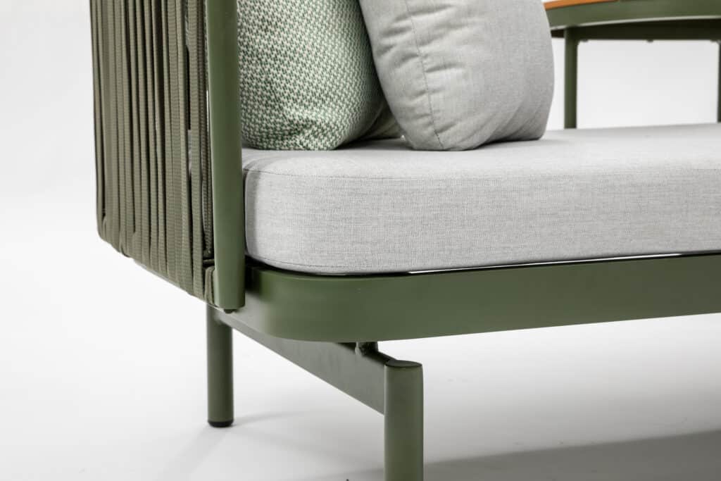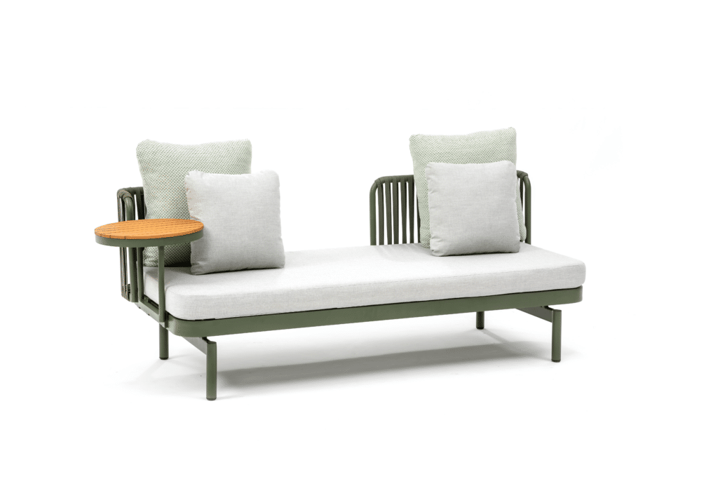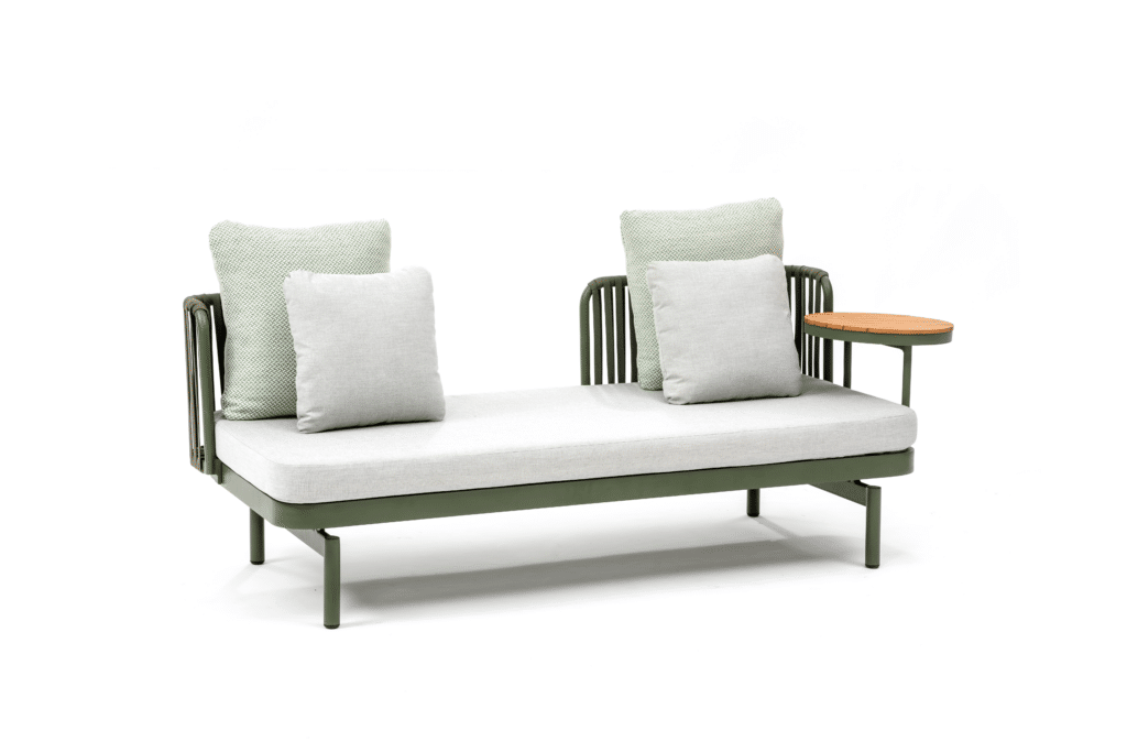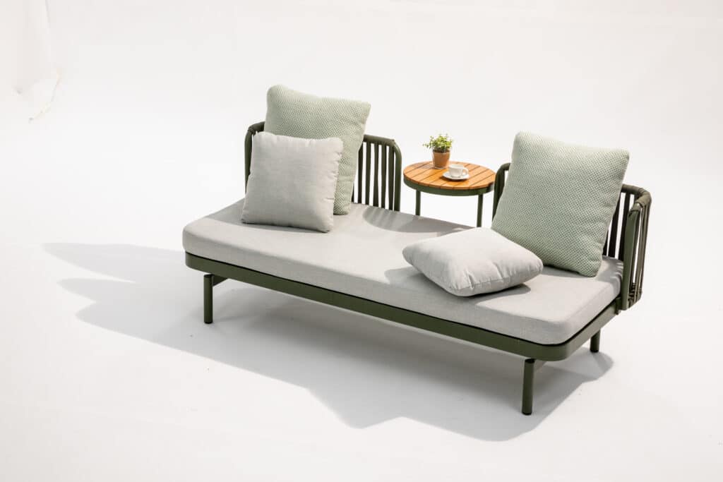 Möchtest du herrlich entspannen auf einer kompakten, aber komfortablen Lounge-Bank? Die Relaxsofa Isabel Grün ist ideal für den Balkon oder einen kleineren Garten. Mit den Maßen 184 x 78 cm bietet diese Gartenbank Platz für 2 bis 3 Personen. Du kannst bequem darauf sitzen oder dich entspannt hinlegen und die Sonne genießen. Die frische grüne Farbe mit hellgrauen Kissen verleiht deinem Außenbereich sofort eine moderne und fröhliche Ausstrahlung.