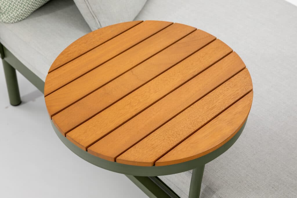 | Material | Pulverbeschichtetem Aluminium, FSC-Akazien-Hartholz |