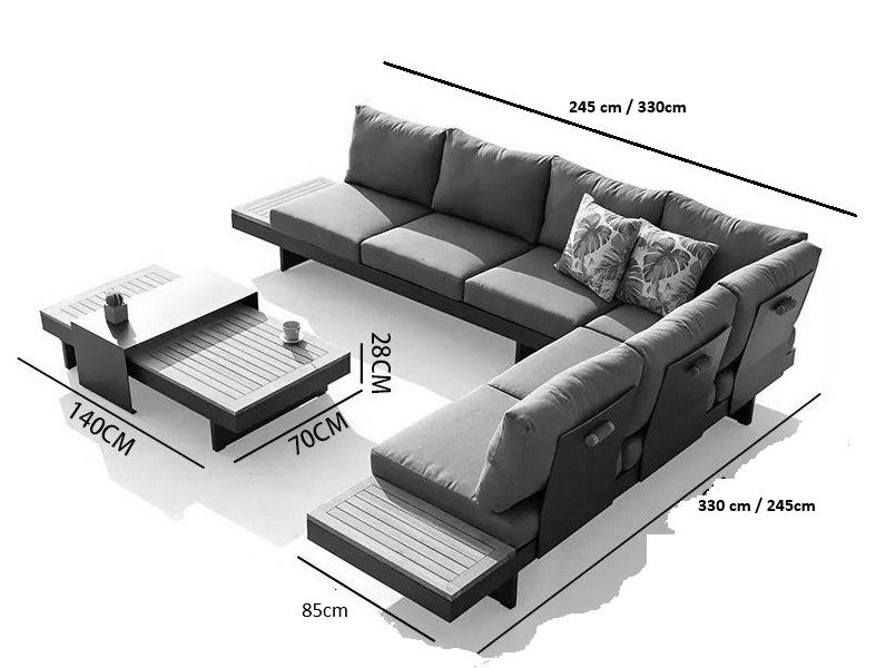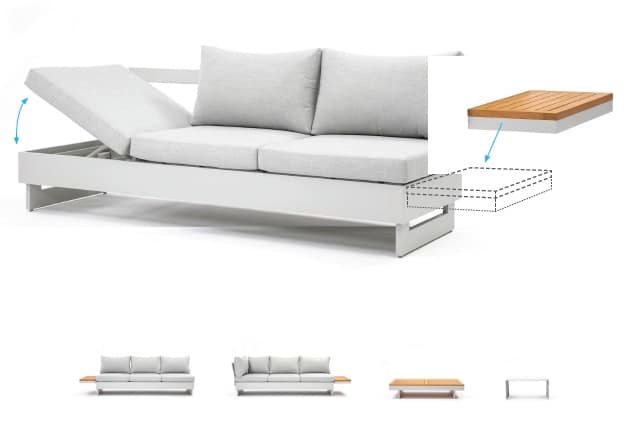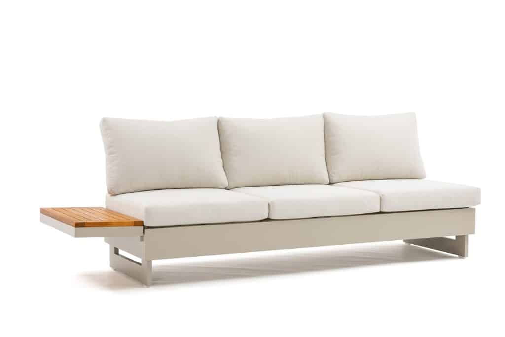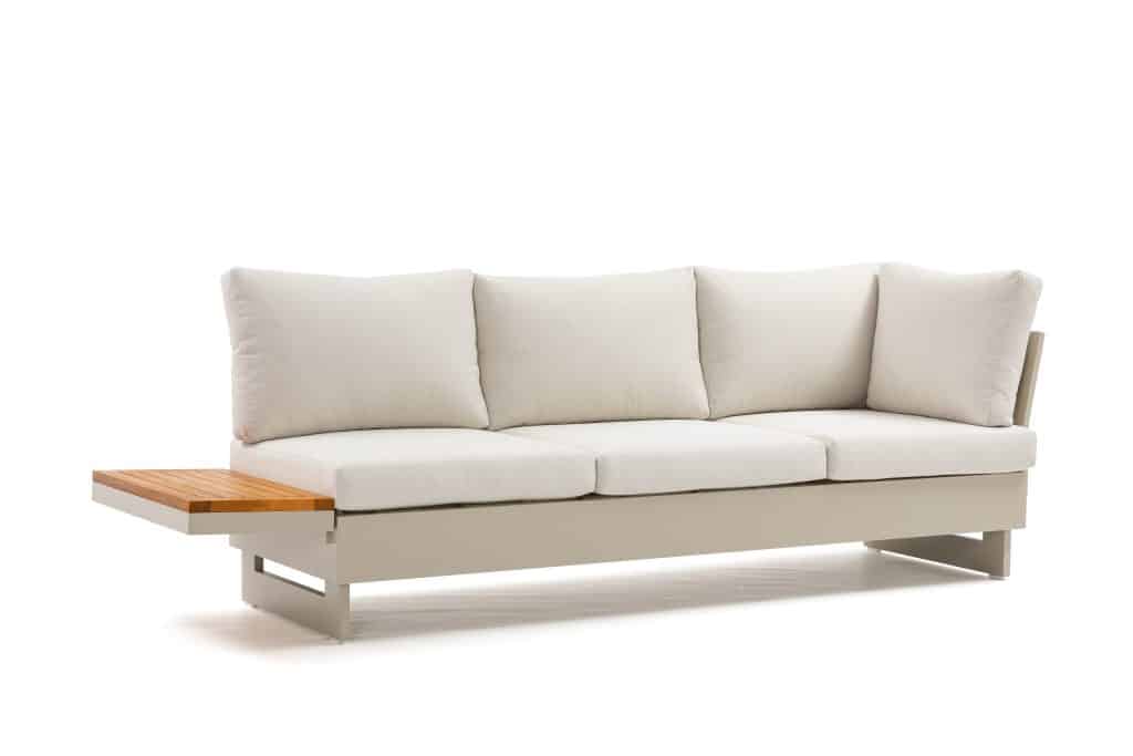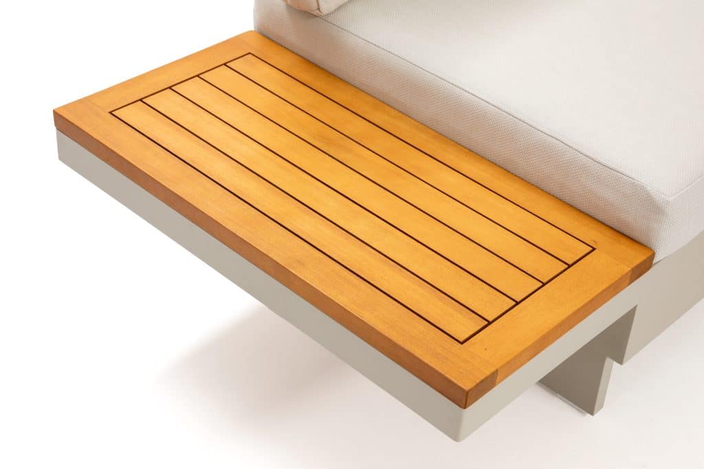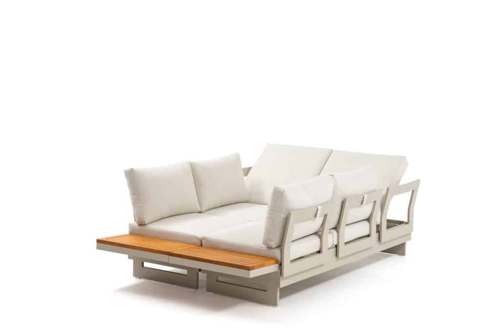 Die Rückenlehnen und Holzablagen lassen sich rundum an den Bänken positionieren. Dadurch können Sie verschiedene Aufstellungen gestalten, wie z. B. ein Ecksofa, zwei separate Bänke oder eine komfortable Liegefläche. Die äußeren Sitzplätze sind höhenverstellbar – ideal, um entspannt mit einem Buch zu liegen. Die extra dicken Sitzkissen mit einer Stärke von ganzen 12 cm sind vollständig wasserabweisend und bestehen aus einem komfortablen Olefin All-Weather-Stoff. Mit einer Sitzhöhe von 42 cm sitzen Sie besonders angenehm und entspannt. Die Kissen sind abziehbar und waschbar, was die Pflege sehr einfach macht. Das Set ist vergleichbar mit dem beliebten Barbados Beige Gartenlounge und wird seit Jahren äußerst erfolgreich verkauft.