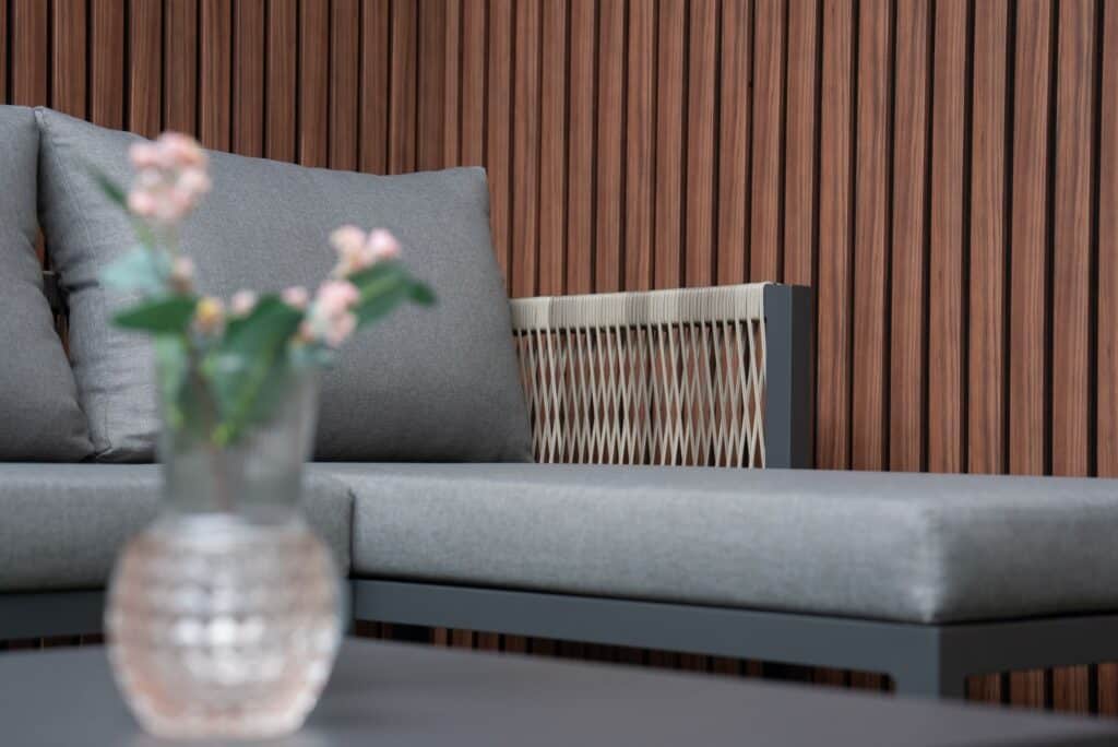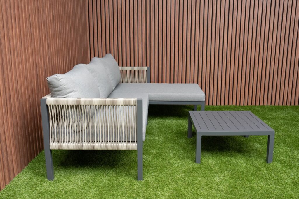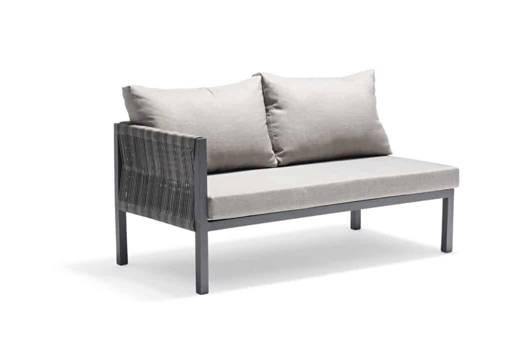 Dank der Chaise Longue rechts entscheiden Sie sich für besonders angenehmen Liegekomfort oder eine breite Sitzbank-Aufstellung. Perfekt zum Entspannen allein, zu zweit oder mit Freunden. Durch die kompakten Maße eignet sich dieses Gartenlounge auch ideal für kleinere Außenbereiche. Die Farbe des Gestells ist zu 100 % identisch mit allen anderen Gartenmöbeln auf unserer Website in Anthrazit. Dadurch lässt sich dieses Ecksofa mühelos mit passenden Tischen, Stühlen und Sesseln kombinieren. Bitte beachten Sie: Die Chaise Longue kann aufgrund der Montage der Elemente ausschließlich rechts montiert werden, wie auf dem Foto gezeigt. Nutzen Sie diesen attraktiven Aktionspreis und bestellen Sie das Gartenlounge Ibiza jetzt. Genießen Sie sofort luxuriöse Relaxmomente in Ihrem Garten.
