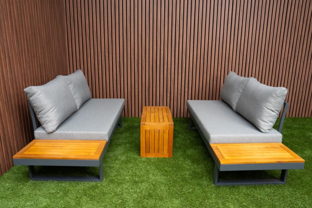 | Material | Pulverbeschichtetem Aluminium, FSC Akazie-Hartholz |