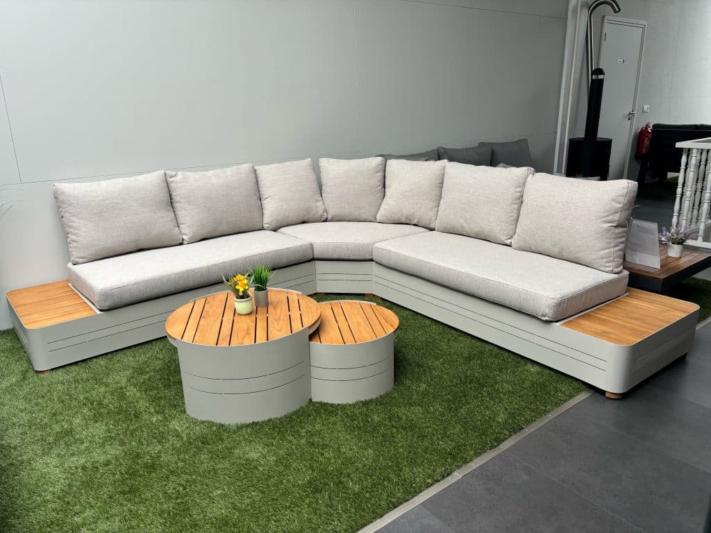 Ob Sie sich in der Sonne ausstrecken, einen Aperitif veranstalten oder einen ruhigen Abend im Freien verbringen möchten – dieses Gartenlounge passt sich mühelos an. Die zwei stilvollen Couchtische bieten jederzeit Platz für Snacks, Getränke oder Dekoration. Auch die Pflege ist unkompliziert: Aluminium reinigen Sie einfach mit einem feuchten Tuch, und das Teakholz sollte gelegentlich mit Öl behandelt werden. Bereit, Ihren Garten in eine luxuriöse Lounge-Ecke zu verwandeln? Bestellen Sie jetzt das Loungeset Zanzibar Premium Weiß Ecksofa und genießen Sie ultimativen Komfort.
