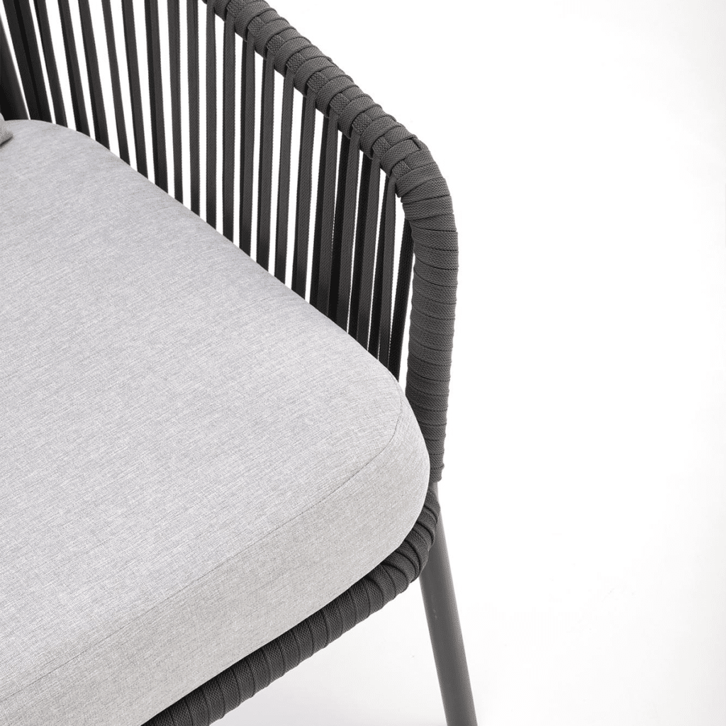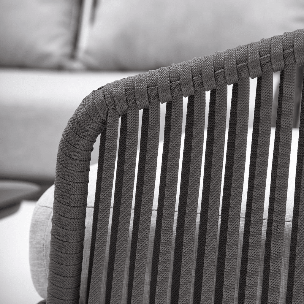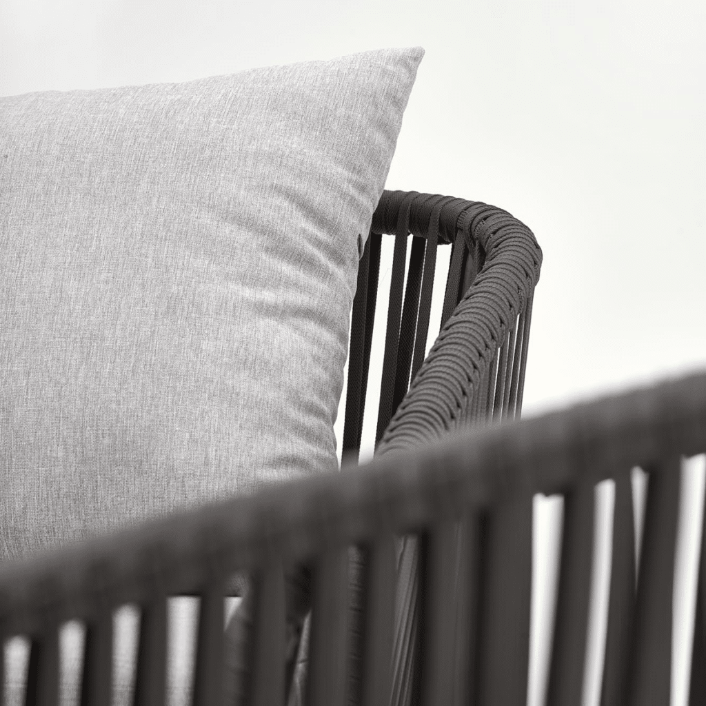 Dank des Aluminiumgestells ist das Möbelset langlebig und wetterbeständig. So hast du viele Saisons Freude daran, ohne dass das Gestell rostet oder verblasst. Die gepolsterten Sitzflächen bieten Komfort und Entspannung an warmen Sommertagen. Die Rope-Rückenlehne verleiht dem Set eine stilvolle und elegante Note. Aluminium ist wartungsfrei und lässt sich ganz einfach mit einem feuchten Tuch reinigen. So kannst du sorgenfrei entspannte Momente im Freien genießen.
