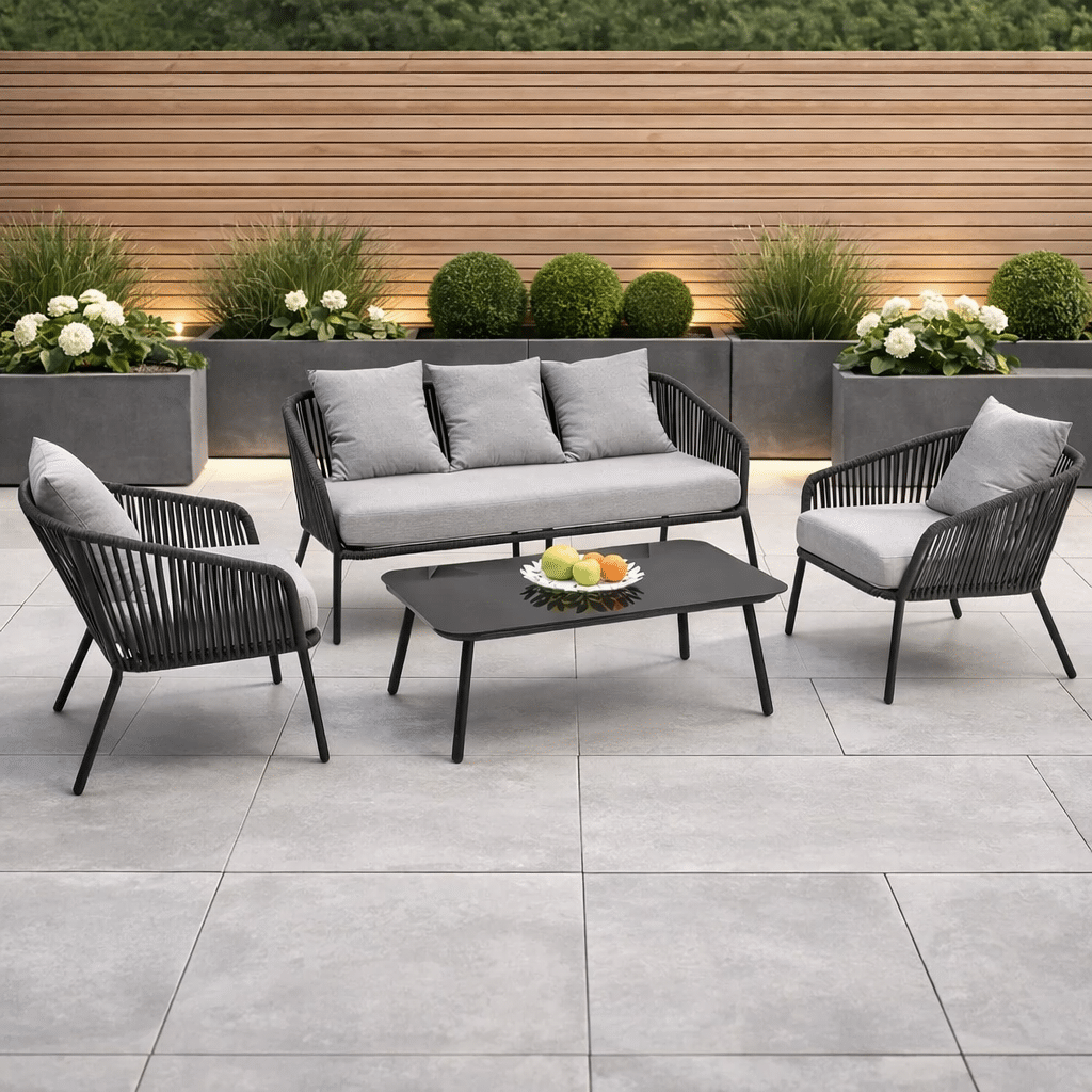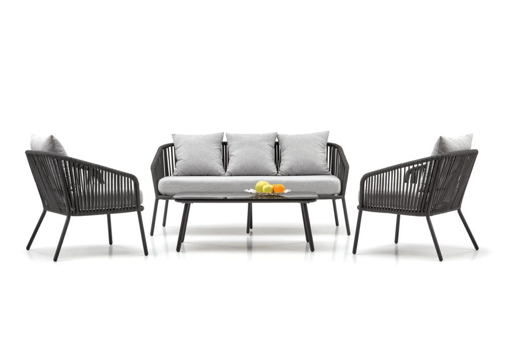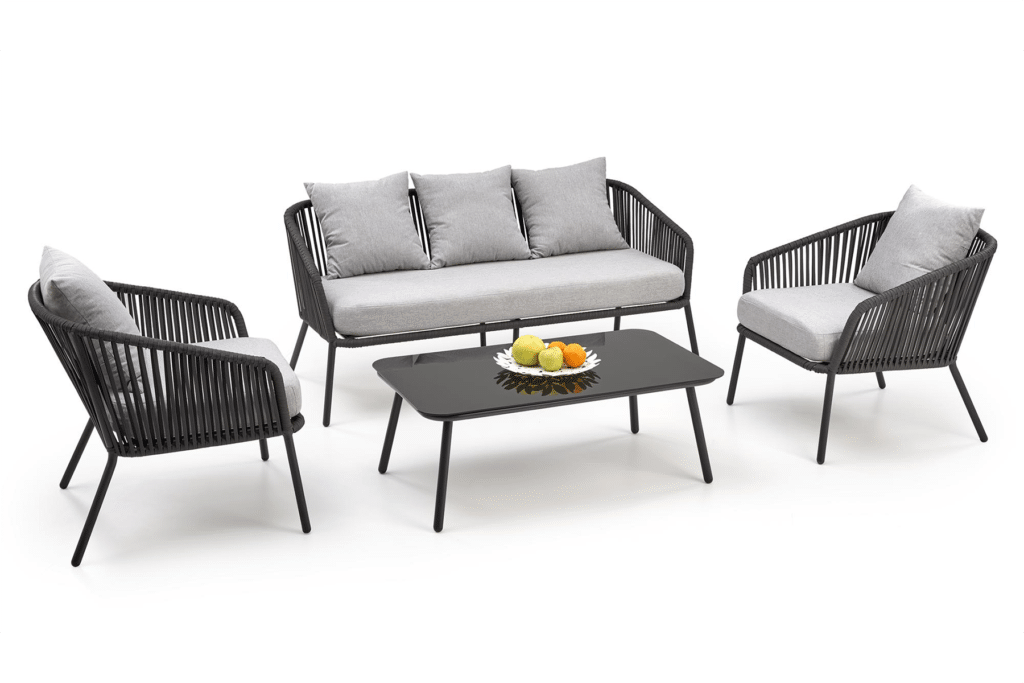Das Rocca Gartenset sieht wunderschön auf einer Terrasse, einem Balkon oder im Garten aus. Ob du alleine mit einem guten Buch relaxen möchtest oder gemütlich mit Familie und Freunden zusammensitzt – dieses Gartenlounge bietet viel Komfort. Bereit, deinen Außenbereich in eine luxuriöse Wohlfühlzone zu verwandeln? Bestelle das Gartenlounge Rocca Schwarz/Grau jetzt und genieße diesen Sommer herrliche Momente an der frischen Luft.