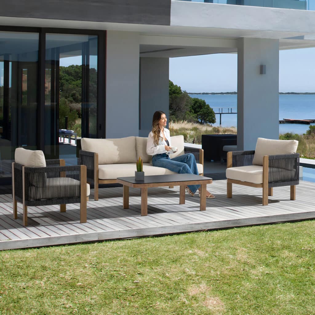 Dieses wunderschöne Gartenlounge der bekannten Marke SenS-Line ist jetzt direkt ab Lager lieferbar. Das moderne Design mit natürlicher Holzoptik und anthrazitfarbenem Rope passt perfekt in jeden Garten oder auf jede Terrasse. Kurz gesagt: ein exklusives Gartenlounge, an dem du viele Jahre Freude haben wirst. Bereit, deinen Außenbereich zu verwandeln? Bestelle das Gartenlounge SenS-Line Palermo jetzt und genieße herrliche Relaxmomente im Freien.