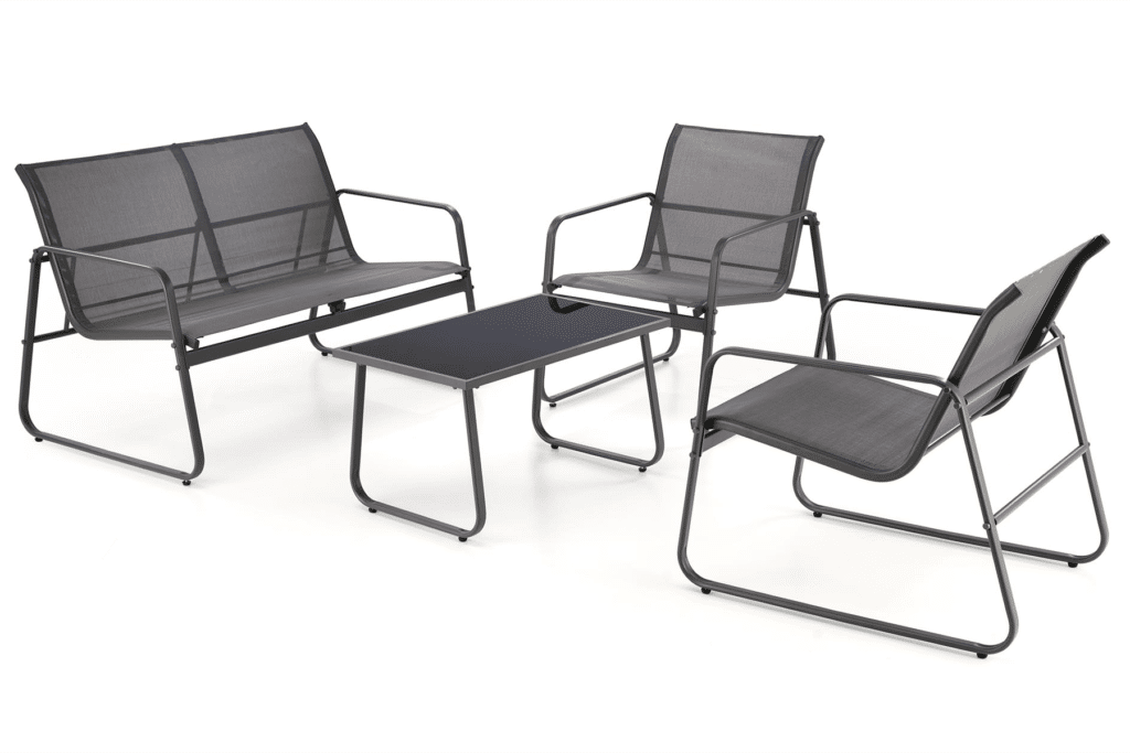 Dieses Gartenset besteht aus langlebigem pulverbeschichtetem Stahl, kombiniert mit Sicherheitsglas und wetterbeständigem Textil. Der pulverbeschichtete Stahl ist rostbeständig und widerstandsfähig gegen alle Witterungseinflüsse. Dadurch kann das Set das ganze Jahr über draußen stehen bleiben. Der Couchtisch mit Sicherheitsglas ist stabil und sicher in der Nutzung. Die Materialien garantieren eine lange Lebensdauer und eine einfache Pflege. Die Reinigung erfolgt ganz unkompliziert mit einem feuchten Tuch.