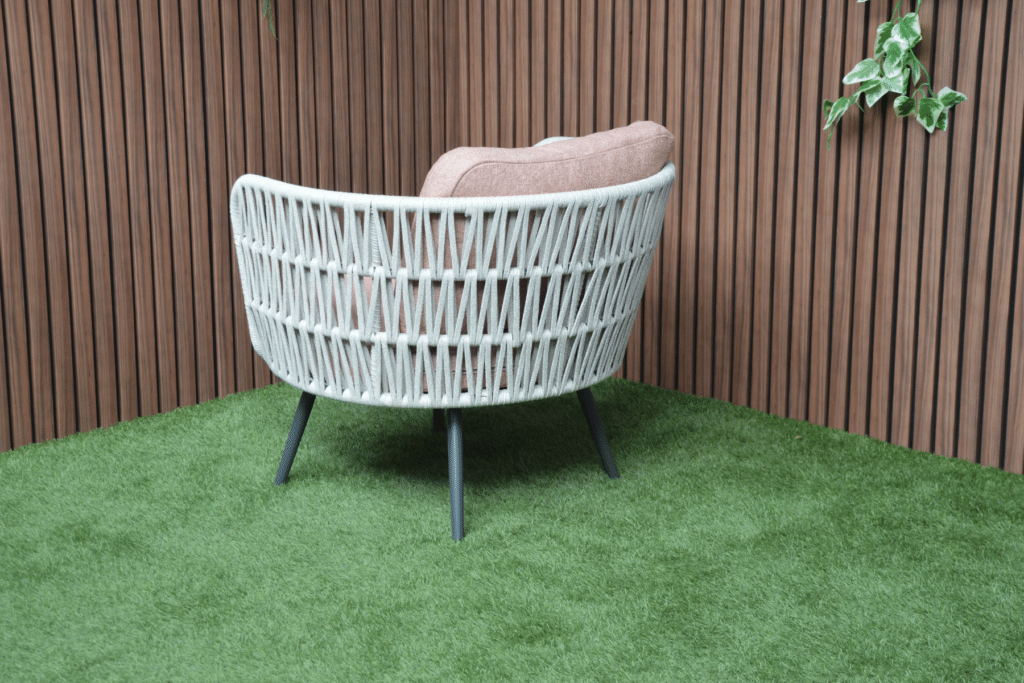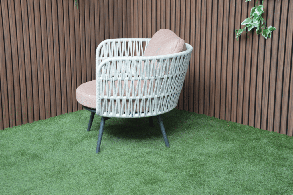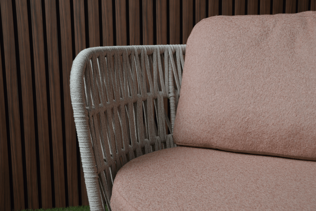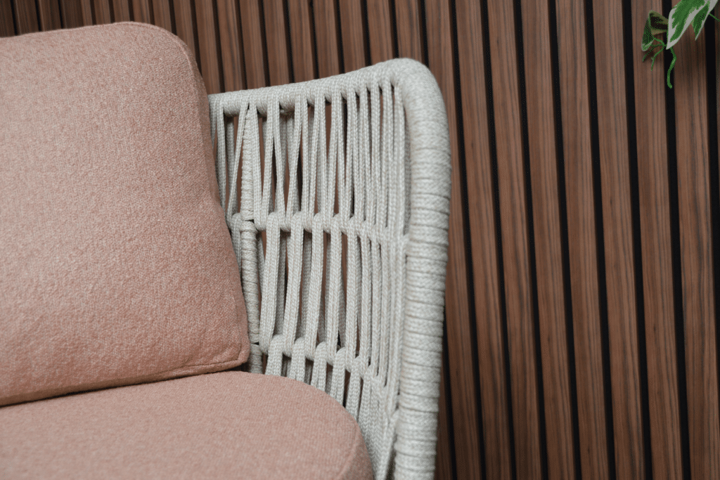 Schaffe dir deinen persönlichen Wohlfühlort mit dem Bistroset Sophia. Dieses wunderschöne Set besteht aus zwei vollständig drehbaren Stühlen und einem passenden Tischchen. Die großzügigen Stühle lassen sich um 360 Grad drehen, sodass du dich mühelos bewegen und in alle Richtungen schauen kannst. Das beige gewebte Rope mit einer Breite von 14 mm verleiht den Stühlen eine natürliche, luxuriöse Ausstrahlung. In Kombination mit den warm rosafarbenen Kissen und dem anthrazitfarbenen Gestell entsteht ein modernes Set, das perfekt auf jeden Balkon oder jede Terrasse passt.