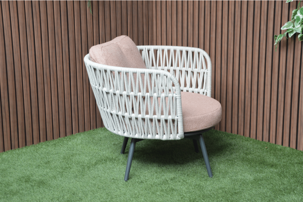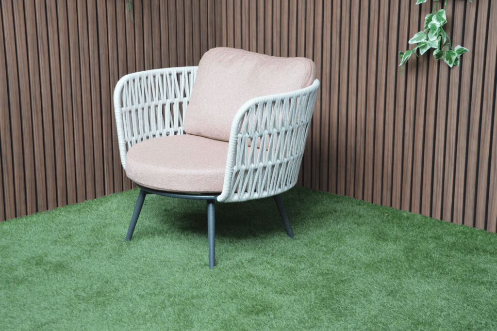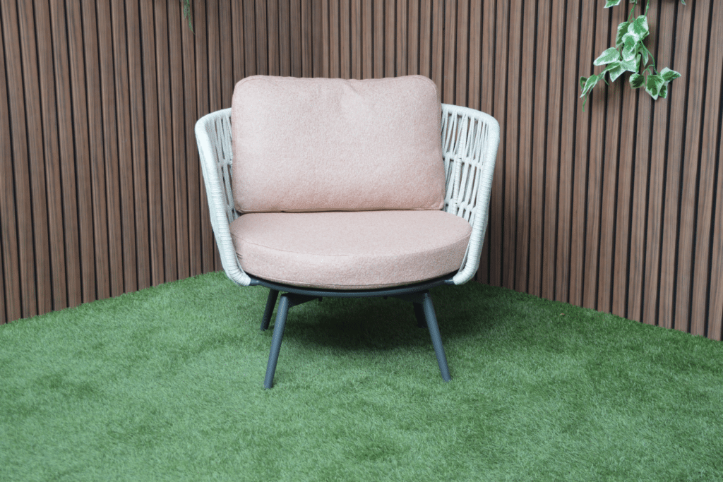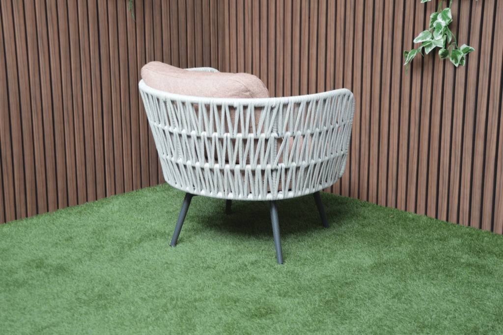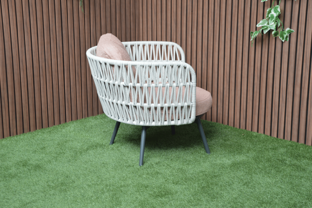 Schaffe dir deinen persönlichen Wohlfühlort mit dem Bistroset Sophia. Dieses wunderschöne Set besteht aus zwei vollständig drehbaren Stühlen und einem passenden Tischchen. Die großzügigen Stühle lassen sich um 360 Grad drehen, sodass du dich mühelos bewegen und in alle Richtungen schauen kannst. Das beige gewebte Rope mit einer Breite von 14 mm verleiht den Stühlen eine natürliche, luxuriöse Ausstrahlung. In Kombination mit den warm rosafarbenen Kissen und dem anthrazitfarbenen Gestell entsteht ein modernes Set, das perfekt auf jeden Balkon oder jede Terrasse passt.