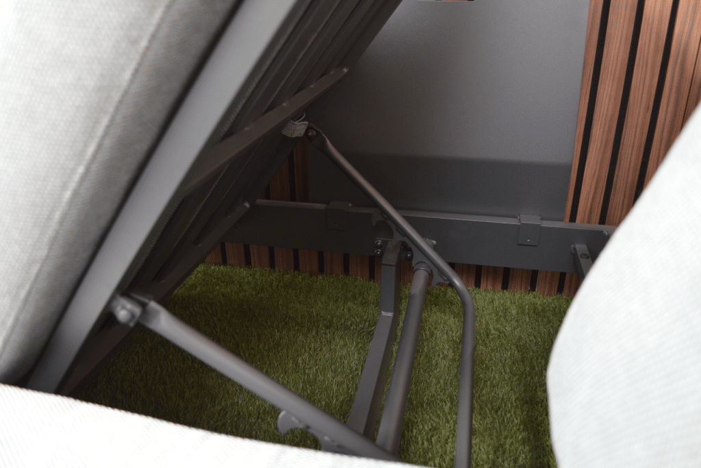 Dieses Diningset ist wirklich multifunktional und lässt sich im Handumdrehen in zwei separate Bänke, eine großzügige Eckbank oder komfortable Liegeflächen zum Entspannen umwandeln. So passen Sie das Set ganz einfach an jede Situation des Tages an. Die Rückenlehnen können rundum an den Bänken positioniert werden und die Holzablagen mit den Maßen 70 × 35 cm sind verschiebbar. Der Tisch ist von 49 bis 71 cm höhenverstellbar – ideal für den Wechsel zwischen Lounge- und Esstischhöhe. Die dicken Sitzkissen mit einer Stärke von 12 cm bestehen aus wasserabweisendem Olefin-Stoff. Das pulverbeschichtete Aluminiumgestell in Anthrazit ist rostfrei und pflegeleicht. Akzente aus FSC-zertifiziertem Akazien-Hartholz sorgen für eine warme Ausstrahlung.