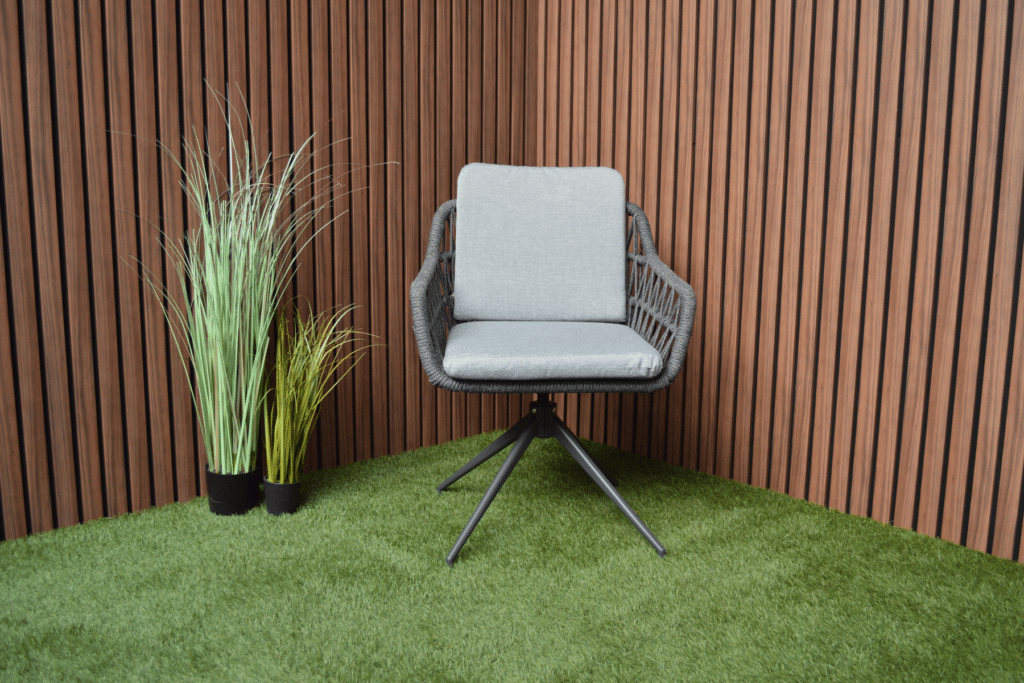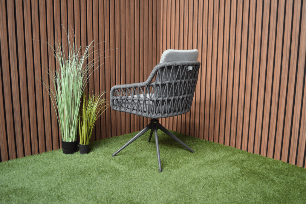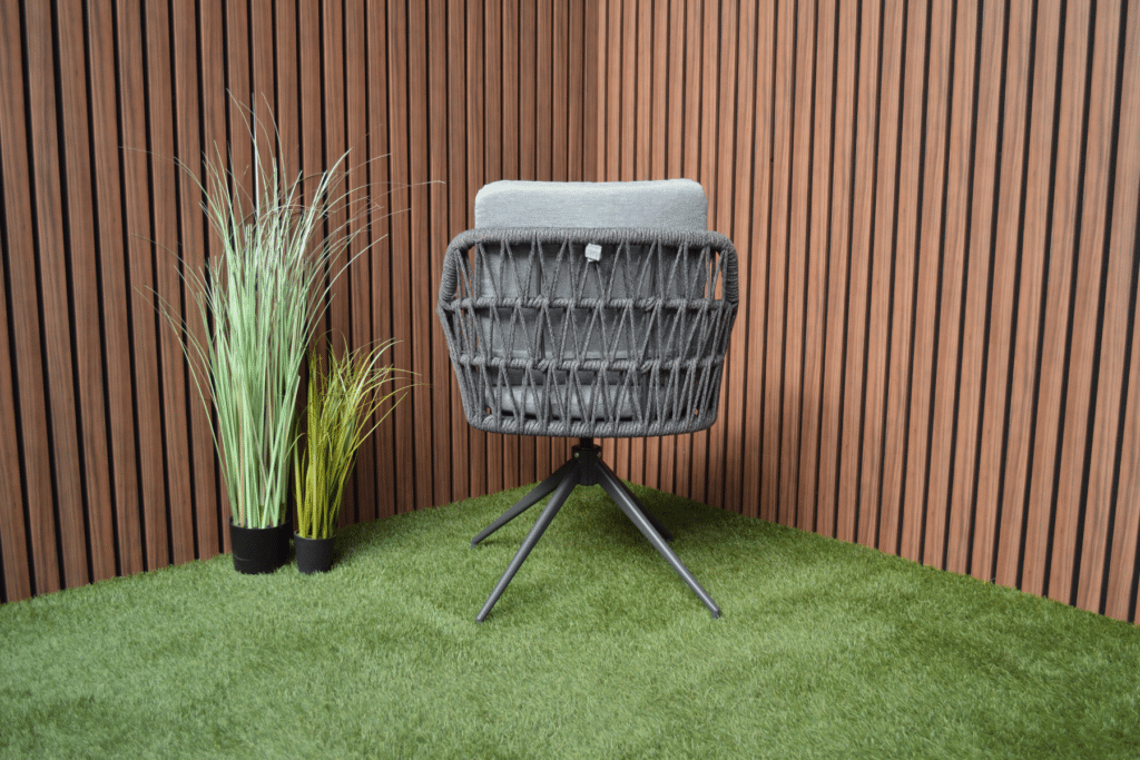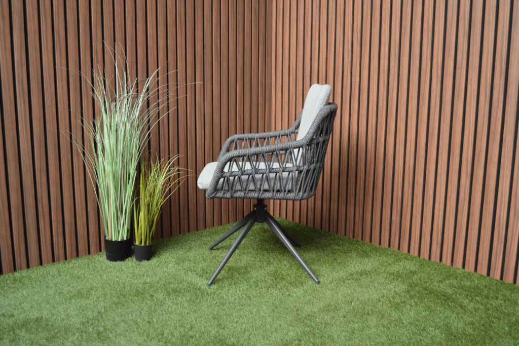 Möchtest du bequem sitzen und dich gleichzeitig mühelos am Tisch bewegen? Der Sevilla Anthrazit macht es möglich. Dieser drehbare Gartensessel lässt sich um 360 Grad drehen, sodass du ganz entspannt mit Freunden sprechen kannst, ohne das Gestell zu verschieben. Wenn du aufstehst, dreht sich der Stuhl automatisch in die Ausgangsposition zurück. So stehen deine Stühle immer ordentlich am Tisch. Perfekt, um gemütliche Sommerabende in vollen Zügen zu genießen.