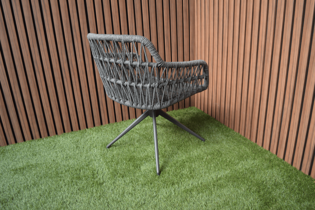 Das pulverbeschichtete Aluminiumgestell in Anthrazit ist leicht, rostfrei und kann das ganze Jahr über draußen stehen bleiben. Das Rope-Geflecht ist wetterbeständig und verblasst nicht schnell. Die anthrazitfarbene Farbe ist zu 100 % identisch mit allen anderen Gartenmöbeln in dieser Farbe auf unserer Website. Kombiniere den drehbaren Sevilla Gartensessel perfekt mit passenden Tischen, Loungesets und komfortablen Sesseln. Bereit für ultimativen Sitzkomfort? Bestelle den drehbaren Sevilla Gartensessel jetzt und erlebe, wie angenehm entspanntes Sitzen am Tisch sein kann.