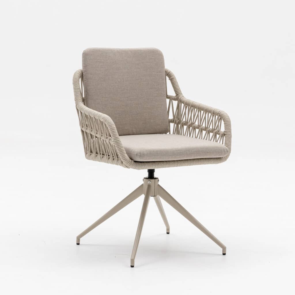 Suchst du einen komfortablen Gartensessel mit dem gewissen Extra? Der Sevilla Warmweiß ist die perfekte Wahl für alle, die Luxus und Komfort miteinander verbinden möchten. Dieser drehbare Gartensessel lässt sich um 360 Grad drehen, sodass du ganz einfach mit Freunden sprechen kannst, ohne das Gestell zu verschieben. Wenn du aufstehst, dreht sich der Stuhl automatisch in die Ausgangsposition zurück. So stehen deine Stühle immer ordentlich am Tisch. Das geflochtene Rope in der Rückenlehne sorgt für eine moderne und luxuriöse Ausstrahlung.