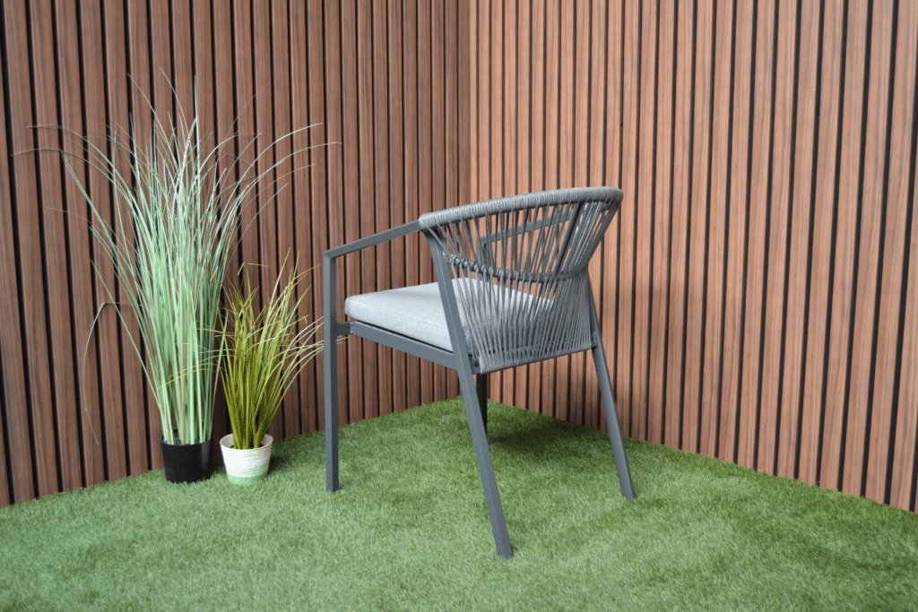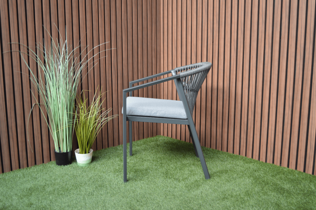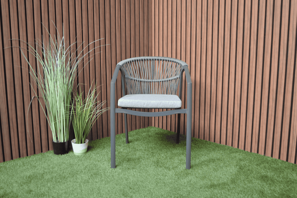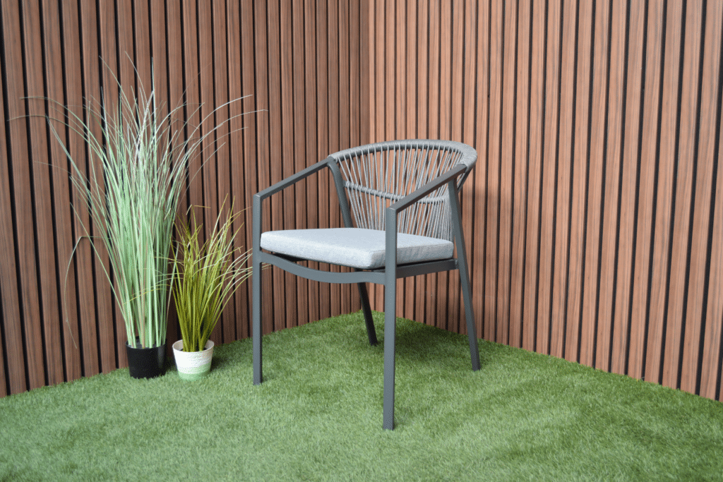 Genieße luxuriösen Sitzkomfort mit dem Valencia Anthrazit Relax Dining Sessel. Dieser moderne stapelbare Gartensessel wurde für alle entworfen, die gerne lange draußen sitzen. Das elegante anthrazitfarbene Gestell in Kombination mit dem grauen Sitzkissen verleiht deinem Garten sofort eine luxuriöse Ausstrahlung. Die Rope-Verarbeitung in der Rückenlehne sorgt nicht nur für eine wunderschöne Optik, sondern auch für angenehme Unterstützung.