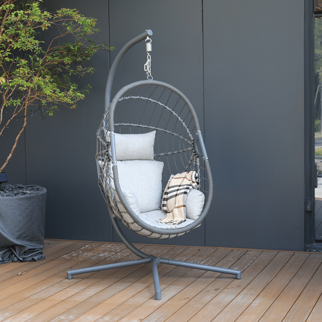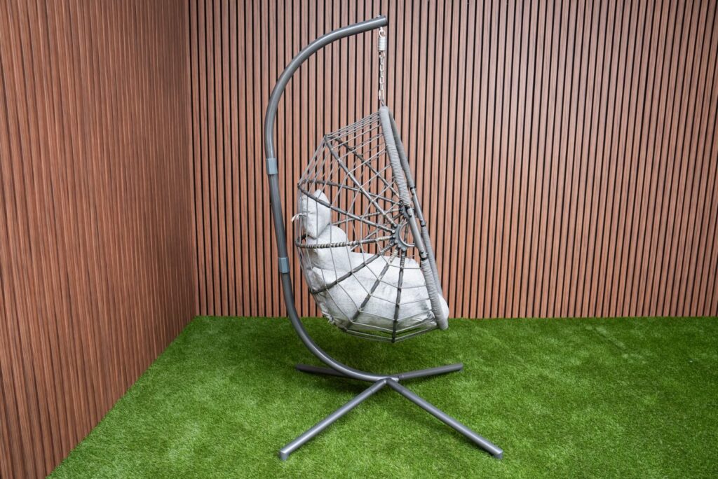 Dank des freistehenden Designs inklusive Gestell kannst du diesen Hängesessel ganz einfach dort platzieren, wo du möchtest – unter einer Überdachung, in einer Ecke auf der Terrasse oder sogar im Innenbereich. Möchtest du das Hängeei lieber separat aufhängen? Dank des stabilen Aufhängehakens ist dies problemlos möglich, zum Beispiel an einem festen Balken oder einer Pergola. Bereit, jeden Tag Entspannung auf höchstem Niveau zu genießen? Bestelle den Hängesessel SenS-Line Lisa Relax Anthrazit jetzt und schaffe dir deinen persönlichen Lieblingsplatz zum Relaxen.