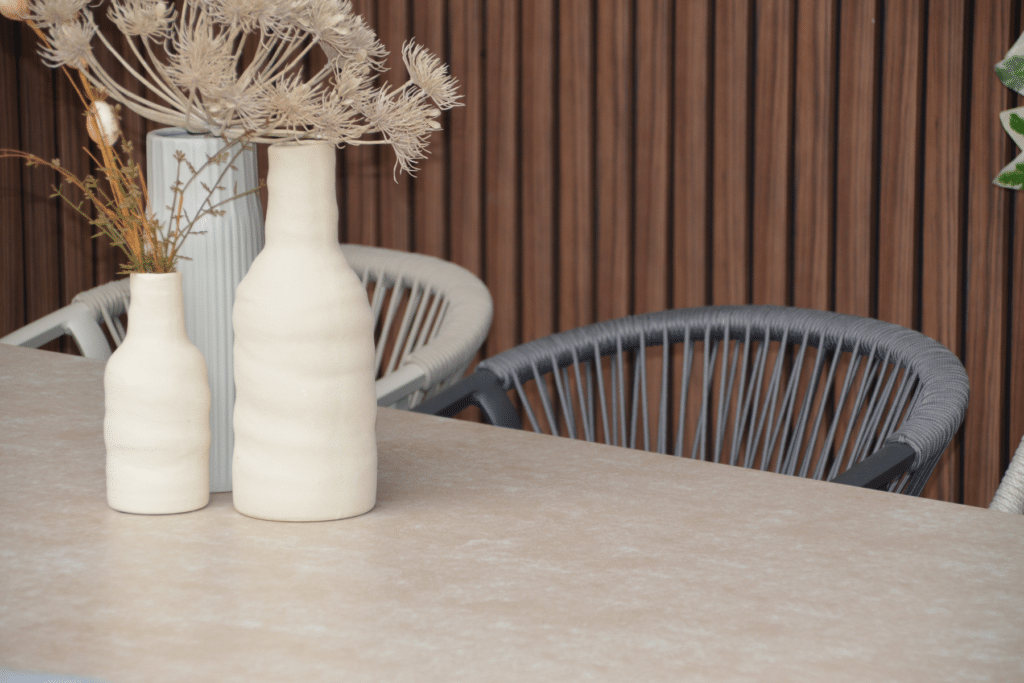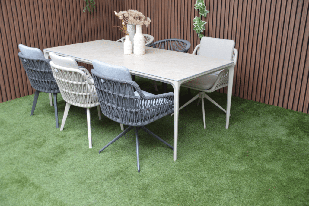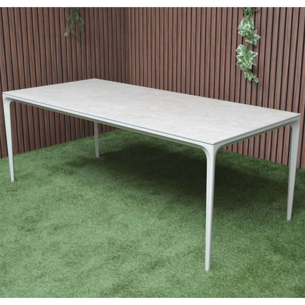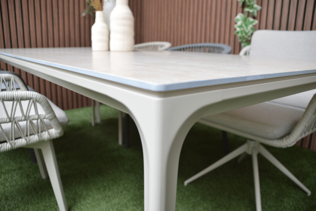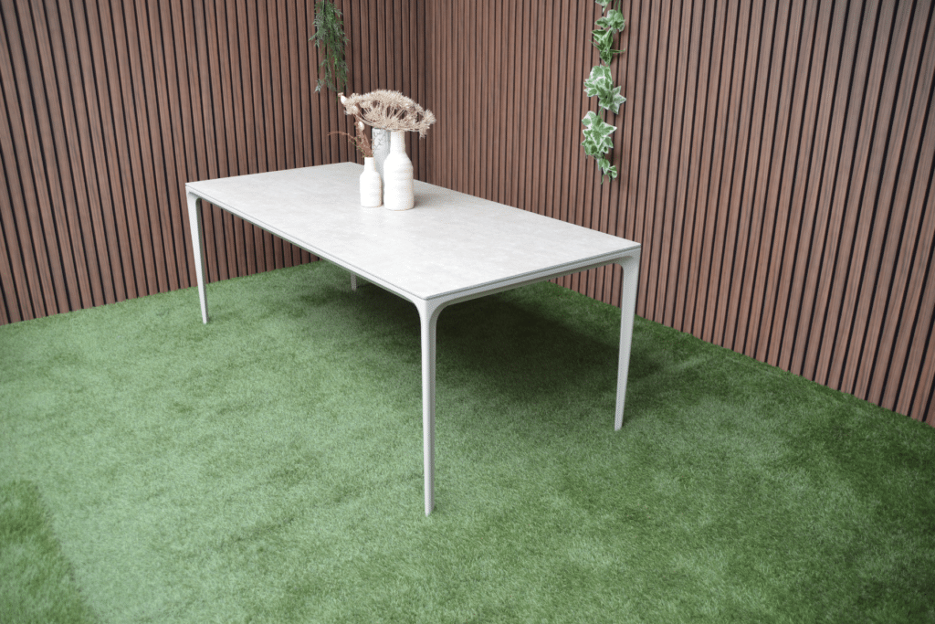Die warmweiße Farbe des Gestells ist zu 100 % identisch mit allen anderen Gartenmöbeln in dieser Farbe auf unserer Website. Kombiniere den Vienna Gartentisch perfekt mit passenden Stühlen, Loungesets und komfortablen Sesseln. So stellst du dir ein komplettes Set zusammen, das harmonisch zusammenpasst. Bereit, stilvoll zu entspannen? Bestelle den Vienna Gartentisch noch heute und genieße diesen Sommer gemütliche Mahlzeiten im Freien.