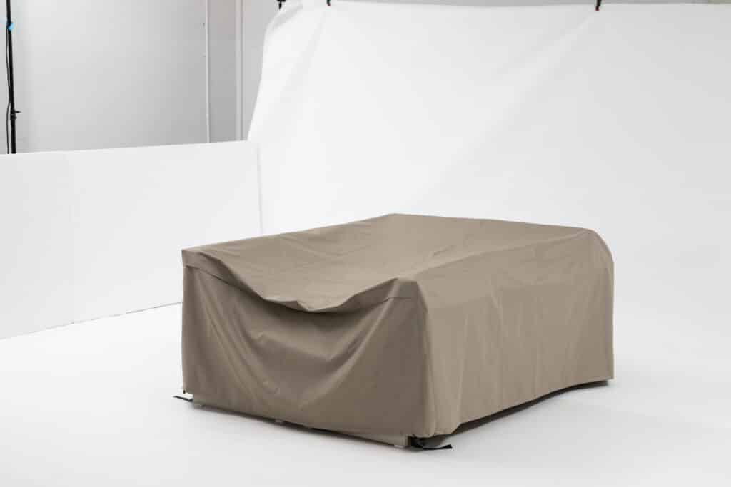 Schutzhülle für Gartenmöbel-Loungesets, u. a. passend für das Premium Emerald II Warm Weiß Loungeset. Regenhülle aus 600D-Polyestergewebe, graues Oxford-Gewebe, mit PE- oder PVC-Beschichtung. Rundum mit Zugband und Befestigungsriemen ausgestattet.