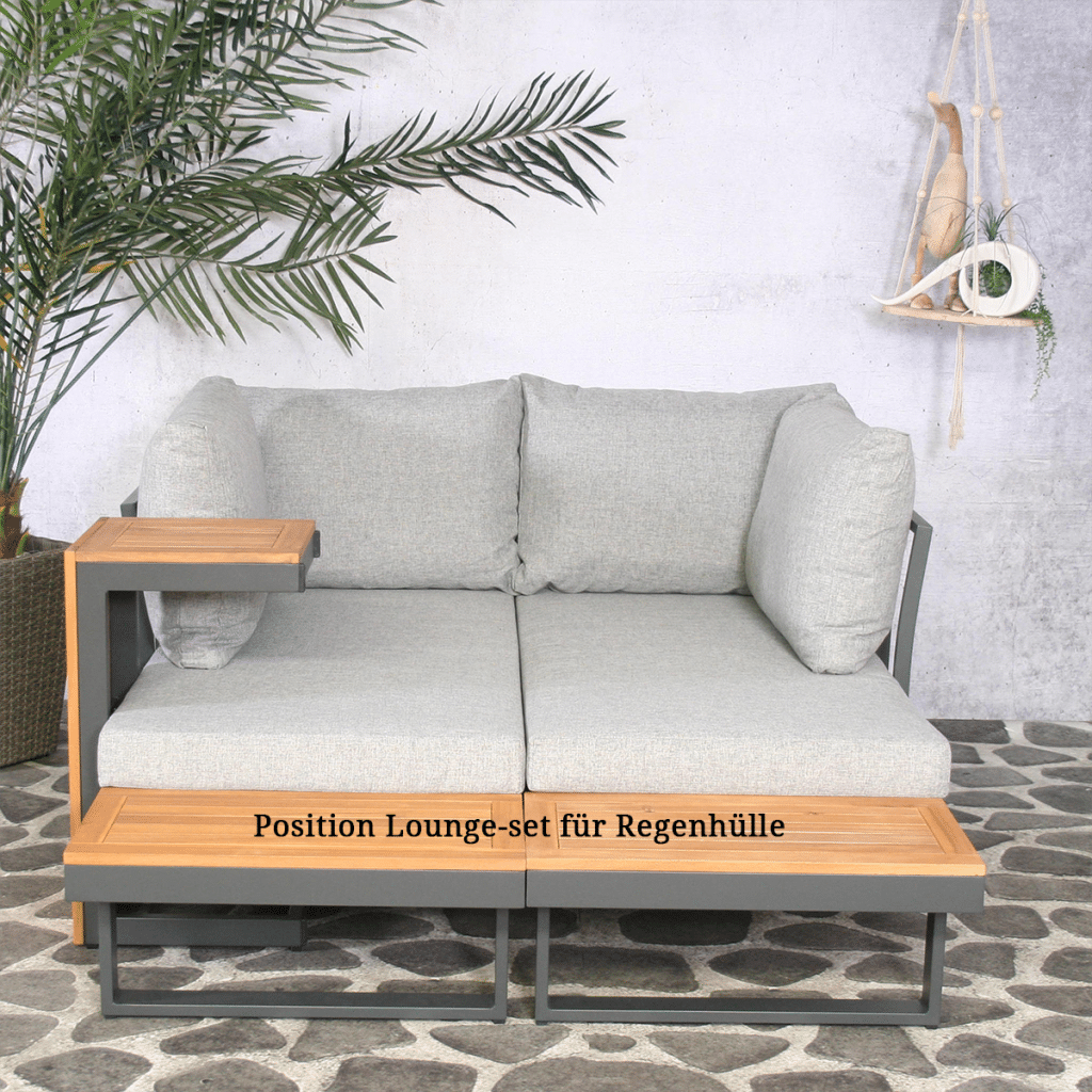 Das Olympia-Gartenmöbelset muss mit beiden Bänken vollständig aneinander anliegend aufgestellt werden, siehe auch das letzte Foto. Die Gesamtmaße der Regenabdeckung betragen 175 × 160 cm. Das XXL-Eckteil passt hier nicht darunter.